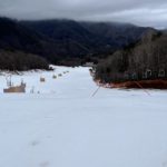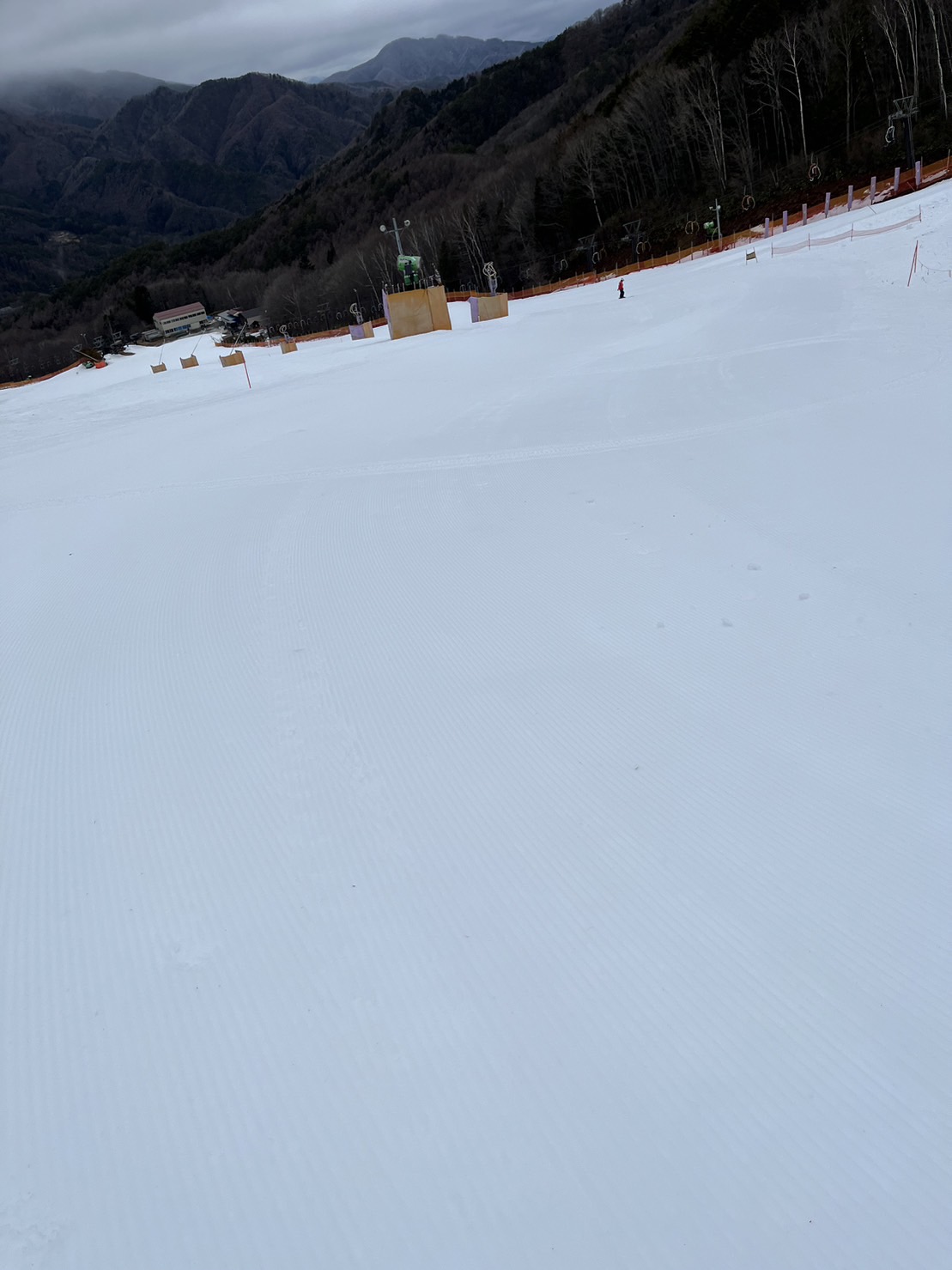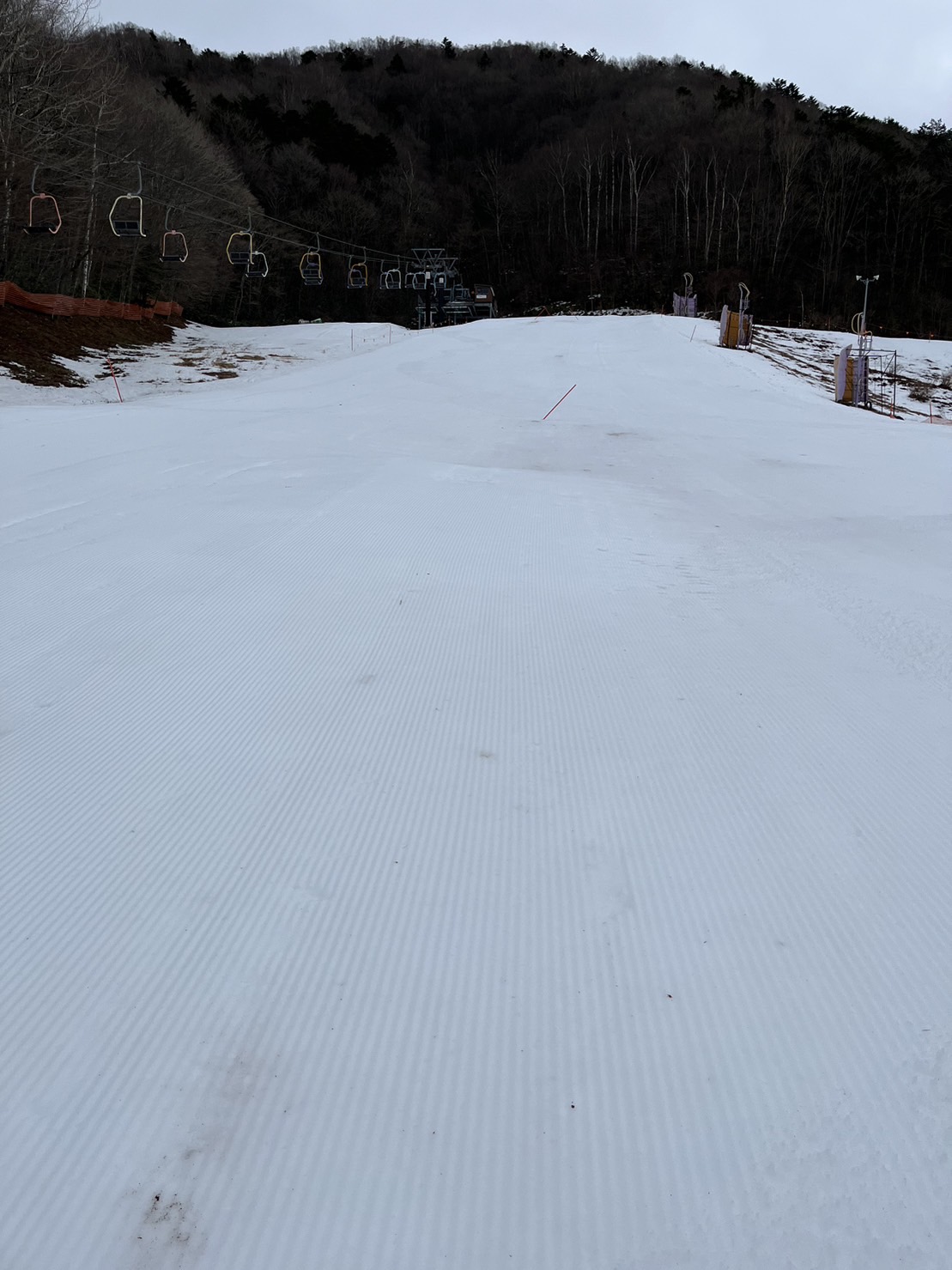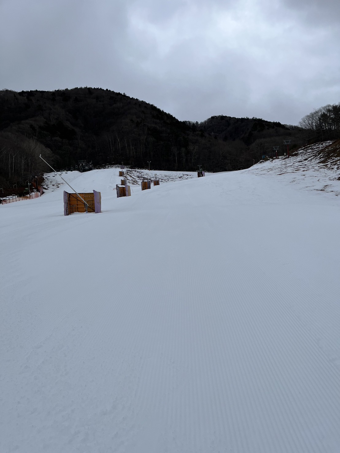 残念ながら雨のせいで雪がだいぶ溶けてしまいましたが、滑降には問題ありません。