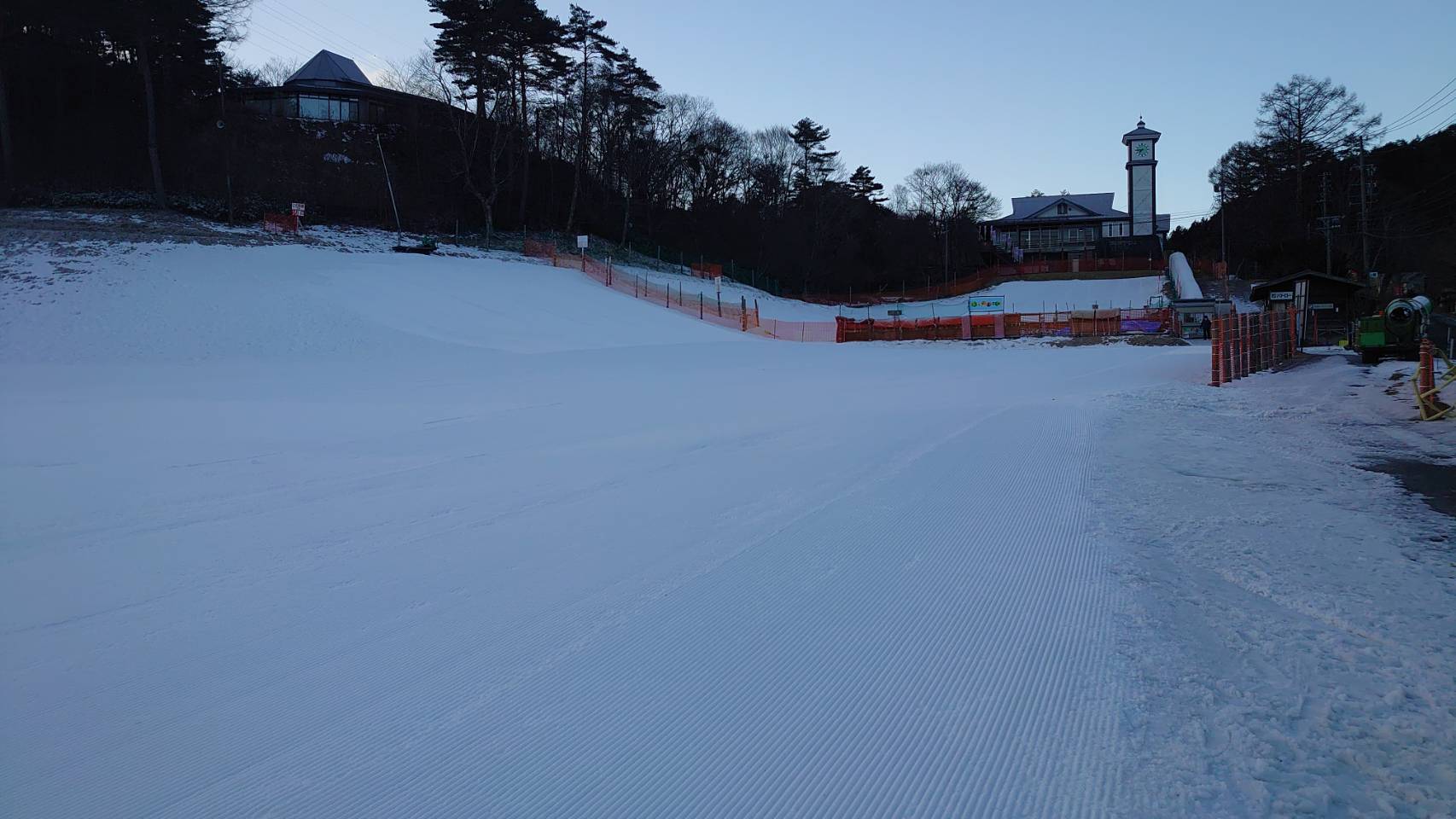 ゲレンデン状態は良好です。朝の気温は氷点下6度。日中は暖かくなるようです。お怪我のないように一日お楽しみください。