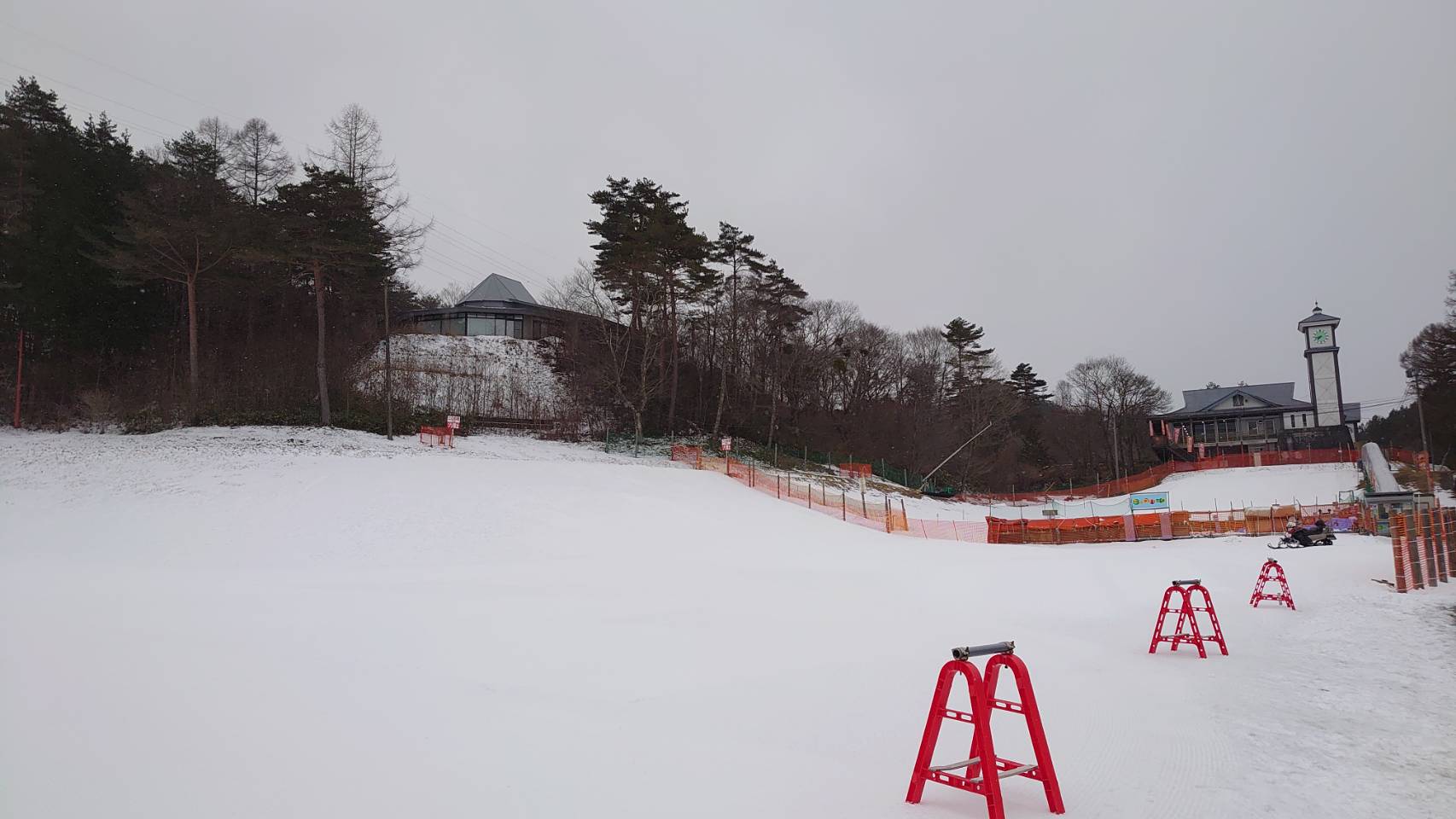 おはようございます。雪模様の治部坂高原スキー場です。気温は低くはありません。今日は一日曇の予報ですが雪が舞うかもしれません。国道、駐車場には積雪はありません。少し込み合うかもしれません。怪我のないように一日、お楽しみください。