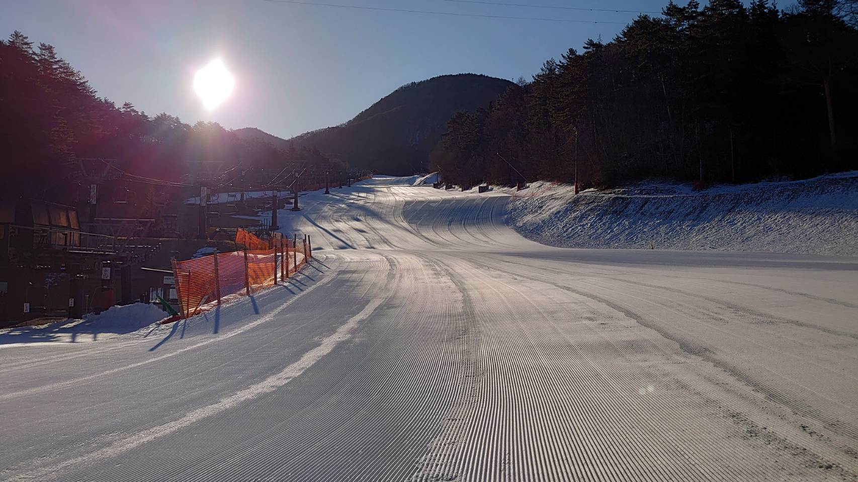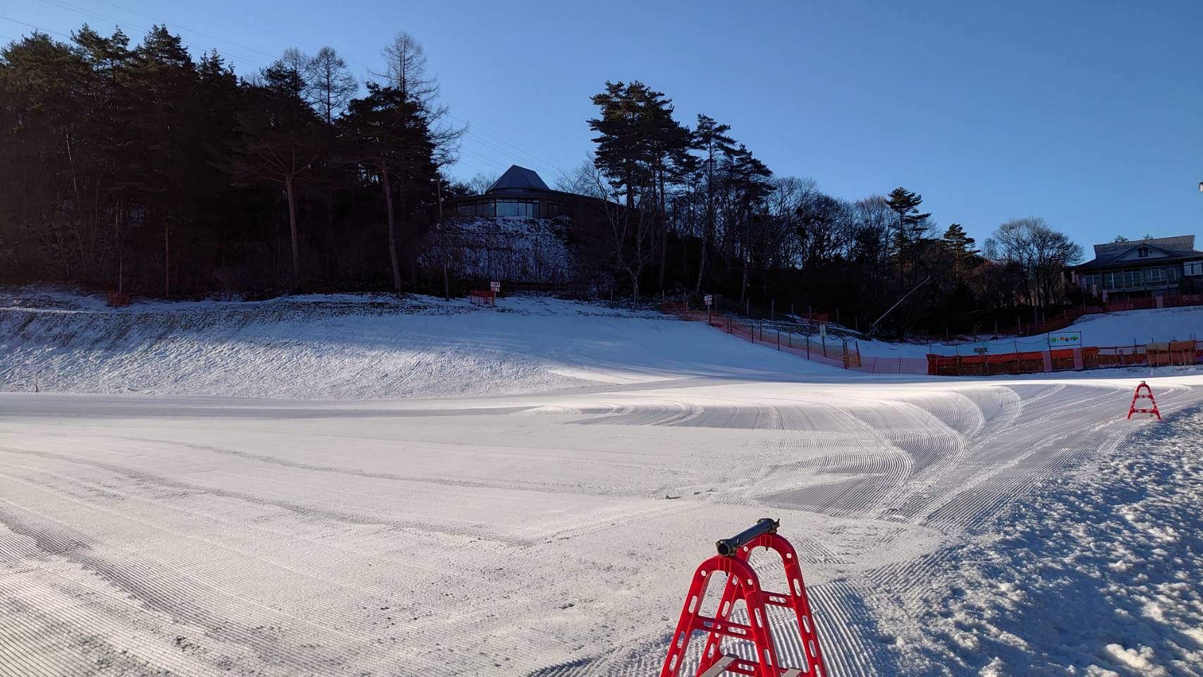 ゲレンデは整備完了。国道、駐車場には雪等はありません。