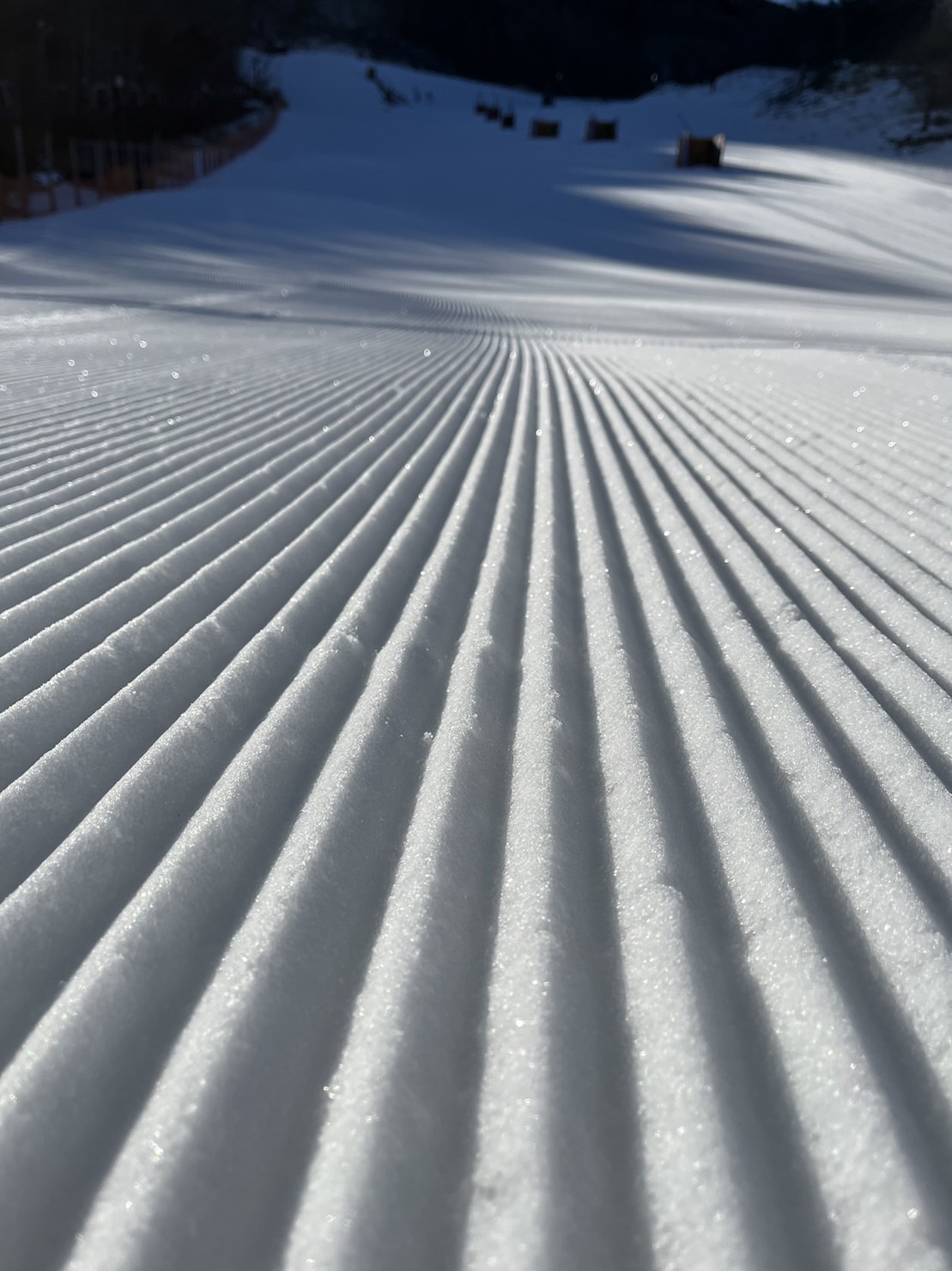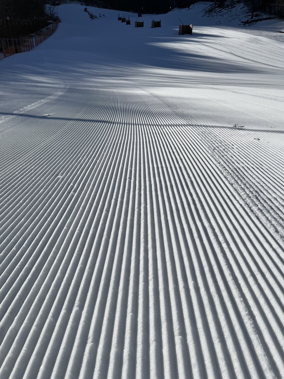 おはようございます。現在氷点下4度。快晴。見事な快晴です。2月も今日で終わり、天気予報では春の日差しと言われてますね。春スキー本番ですかね。Tシャツで陽射しを楽しみながら、のんびり滑る季節がきました。ゲレンデは陽射しで緩みますので、十分注意してお楽しみください。駐車場、国道には積雪、凍結はありません。お怪我のないよう一日お楽しみください。